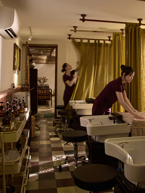 Có thể là một chiếc tủ gỗ sơn xanh hay từng bình gốm đặt nơi góc phòng, mong rằng sự sự chăm chút và tình cảm gửi gắm trong từng điều nhỏ một sẽ giúp khách đến thăm không chỉ là trải nghiệm dịch vụ mà còn có được những thời khắc thấy lòng mình dịu lại trong cái hồn, cái không khí êm đềm mà nếp nhà Sả mang lại.